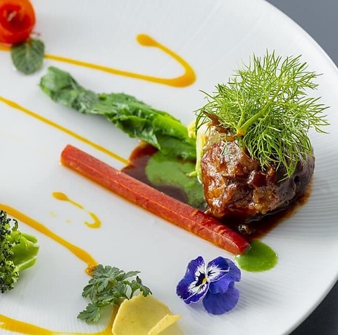 お客様の希望に寄り添いお作りするコースはらお好みの食材や目的などに合わせてご提供。当日のシーンにふさわしいプランで、至福のディナータイムを過ごすお手伝いをさせていただきます。コースの内容や予算についてご相談も可能。時期ごとに使う食材が変わるため、訪れる度新たな一皿に出会える楽しさが魅力です。