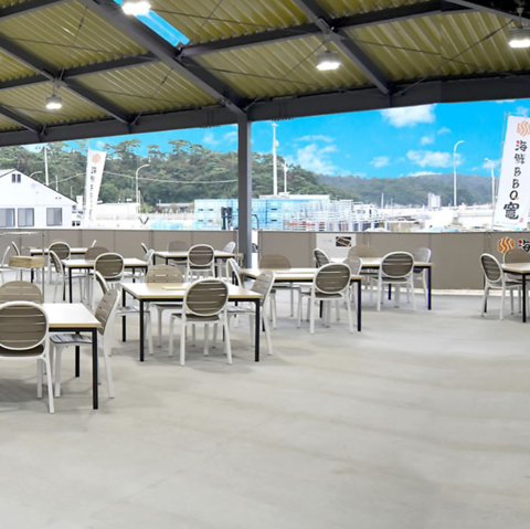 【開放的な屋外で気持ちよくお食事できます、屋根付きなので雨や日差しも安心】潮風を感じながら味わう海鮮バーベキューは格別!屋根付きの設備ですので雨や強い日差しでも快適に利用できます。