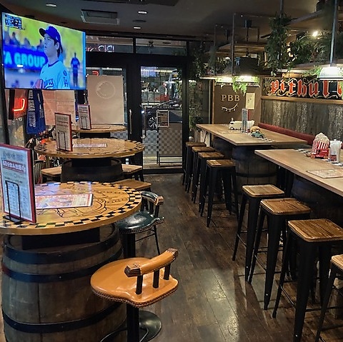 店内のあらゆるところにオールドアメリカンな小物たちが!店主の好みが詰まった、POPでカジュアルでROCKな雰囲気の、遊びゴコロの詰まった空間でワイワイと愉しいひとときをお過ごしください!貸切での打ち上げにも大変喜ばれるバーです。貸切にぴったりのコースもご用意しています。大型TV完備で、スポーツ観戦にもぴったり!