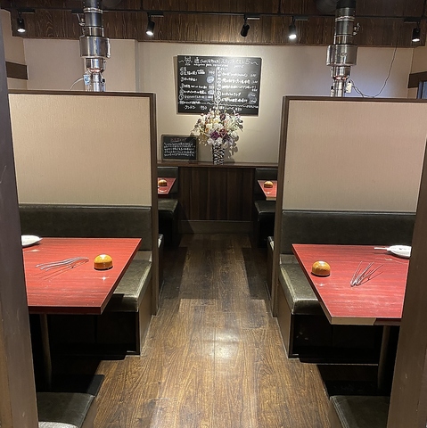 | 貸切 | 20名様×1 | 洗練された空間で、特別な時間を貸切で!50人以上可!貸切承っています。周りを気にせず、料理に集中できるので、心ゆくまで焼肉を堪能できます。コースも多数ご用意しています。仲間との宴会やパーティーはいかがでしょうか。スタッフ一同心よりお待ちしています。 |